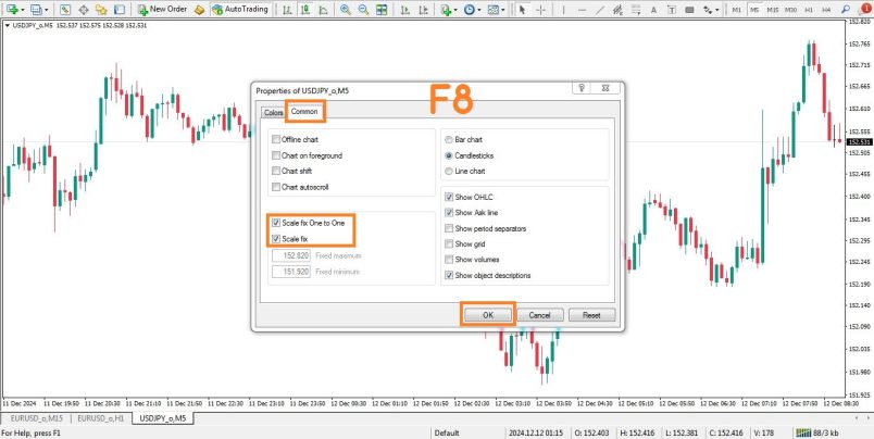 فعال‌سازی و تنظیمات اسکیل (Scale) در متاتریدر 5 شباهت زیادی به متاتریدر 4 دارد، اما با چند تفاوت کوچک در طراحی و امکانات. در اینجا، مراحل کامل تنظیمات اسکیل در متاتریدر 5 آورده شده است:
